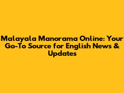 Malayala Manorama Online: English News & Updates