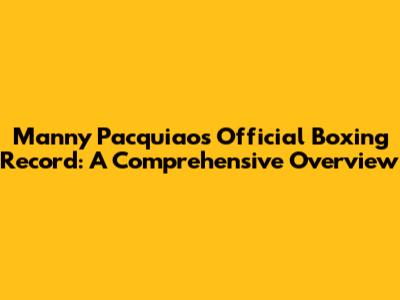 Manny Pacquiao's Official Boxing Record: A Comprehensive Overview