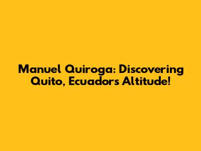 Hey guys! Let's dive into the fascinating story of Manuel Quiroga and his connection to the breathtaking city of Quito, Ecuador, focusing particularly on its impressive altitude. We'll explore who Manuel Quiroga was, what makes Quito so special, and how its high altitude impacts life and culture. So, buckle up and get ready for an exciting journey to the heart of the Andes!