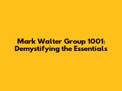 Mark Walter Group 1001: Demystifying The Essentials