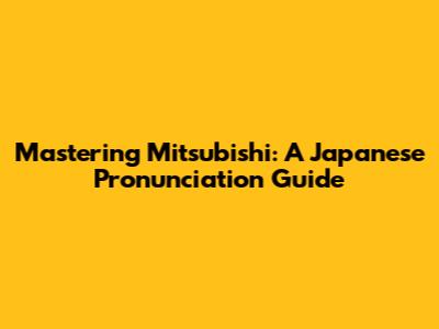 Mastering Mitsubishi: Japanese Pronunciation Guide