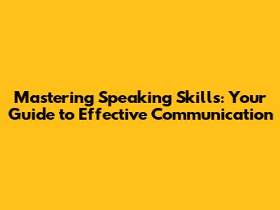 Mastering Speaking Skills: Your Guide To Effective Communication