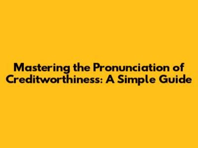 Mastering The Pronunciation Of Creditworthiness: A Simple Guide