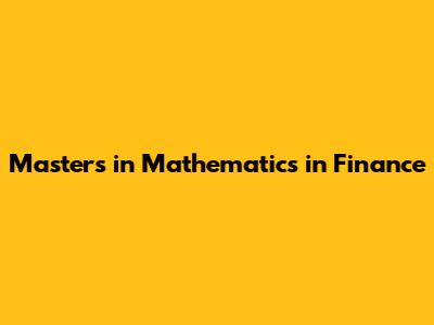 What is a Masters in Mathematics in Finance?