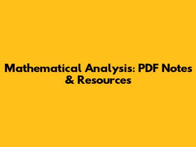 Mathematical Analysis: PDF Notes & Resources
