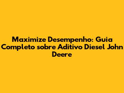 Maximize Desempenho: Guia Completo Sobre Aditivo Diesel John Deere