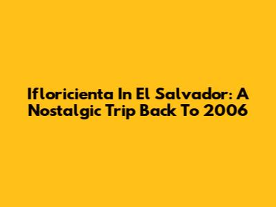 Ifloricienta In El Salvador: A Nostalgic Trip Back To 2006