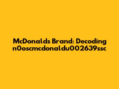 McDonald's Brand: Decoding N0oscmcdonaldu002639ssc