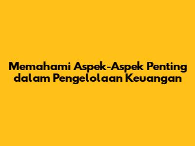 Memahami Aspek-Aspek Penting Dalam Pengelolaan Keuangan