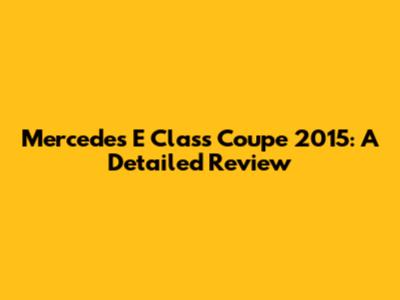 Mercedes E Class Coupe 2015: Review, Specs & More