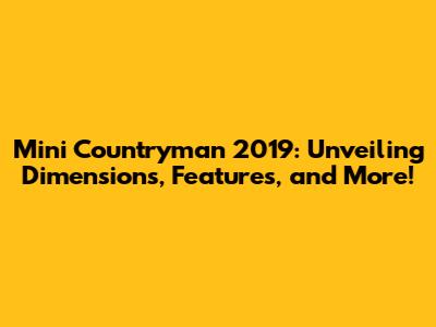 Hey there, car enthusiasts! Let's dive deep into the Mini Countryman 2019, a fantastic compact SUV that's all about blending iconic Mini style with a dash of practicality. If you're pondering whether this car is the right fit for your lifestyle, you're in the right place. We'll explore the Mini Countryman 2019 dimensions, its impressive features, and everything else you need to know to make an informed decision. So, buckle up, and let's get started!