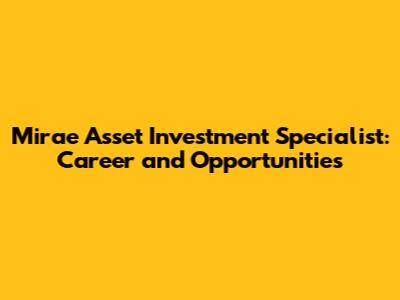 Mirae Asset Investment Specialist: Career And Opportunities