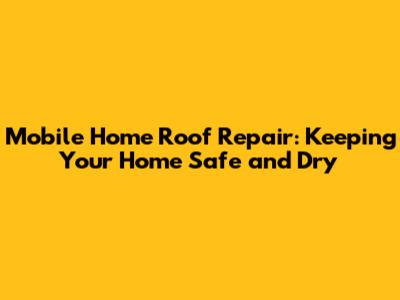Mobile Home Roof Repair: Keeping Your Home Safe and Dry