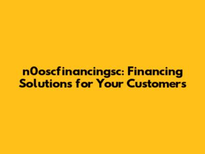 N0oscfinancingsc: Financing Solutions For Your Customers