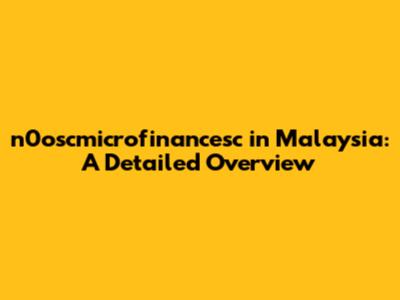 N0oscmicrofinancesc In Malaysia: A Detailed Overview