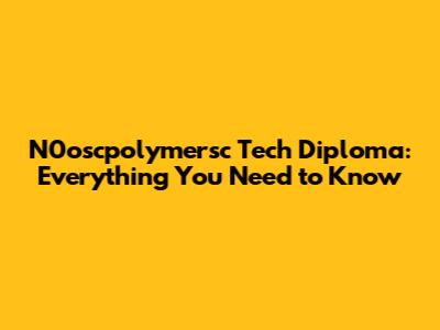 N0oscpolymersc Tech Diploma: Everything You Need To Know