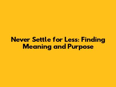Never Settle For Less: Finding Meaning And Purpose