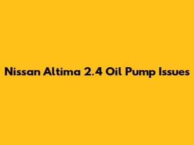 Nissan Altima 2.4 Oil Pump Issues
