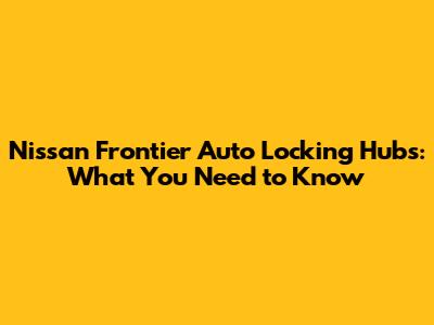 Nissan Frontier Auto Locking Hubs: What You Need To Know