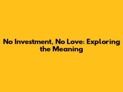 No Investment, No Love: Exploring The Meaning