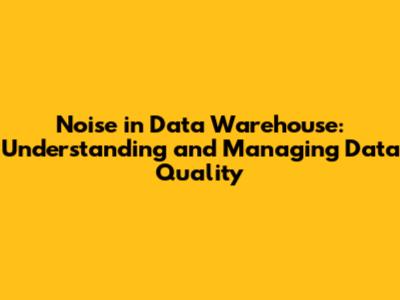 Noise In Data Warehouse: Understanding And Managing Data Quality