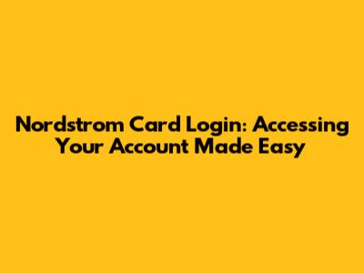 Nordstrom Card Login: Accessing Your Account Made Easy