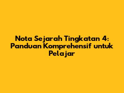 Nota Sejarah Tingkatan 4: Panduan Komprehensif Untuk Pelajar
