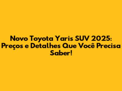 Novo Toyota Yaris SUV 2025: Preços E Detalhes