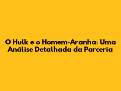 O Hulk E O Homem-Aranha: Uma Análise Detalhada Da Parceria