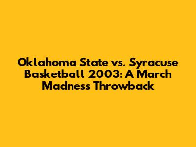 Hey guys! Let's take a trip down memory lane to the thrilling 2003 NCAA Tournament clash between the Oklahoma State Cowboys and the Syracuse Orange. This game wasn't just another bracket buster; it was a captivating contest filled with drama, star power, and a glimpse into the future of college basketball legends. So, buckle up as we dissect this classic matchup, exploring the key players, pivotal moments, and lasting impact it had on both programs.