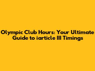 Olympic Club Hours: Your Guide To Iarticle III Timings
