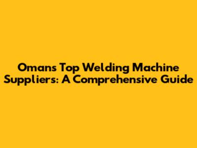 Oman's Top Welding Machine Suppliers: A Comprehensive Guide