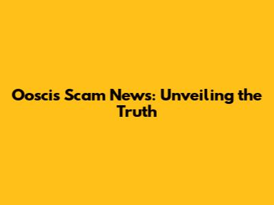 Ooscis Scam News: Unveiling The Truth