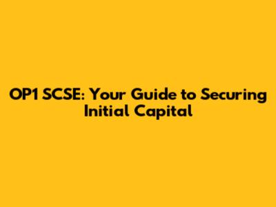 OP1 SCSE: Unlocking Initial Capital For Your Dreams