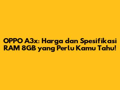 Jadi, tunggu apa lagi? Segera cari tahu harga OPPO A3x RAM 8GB terbaru dan dapatkan smartphone impianmu!