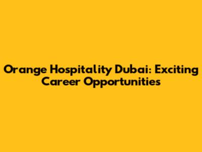 Orange Hospitality Dubai: Exciting Career Opportunities
