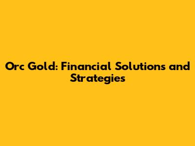 Orc Gold: Financial Solutions And Strategies