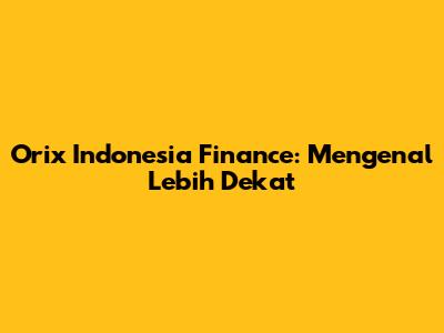 Apa Itu Orix Indonesia Finance?