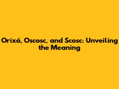 Orixá, Oscosc, And Scosc: Unveiling The Meaning