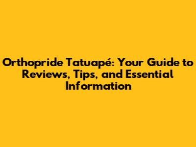 Orthopride Tatuapé: Reviews, Tips & What You Need To Know