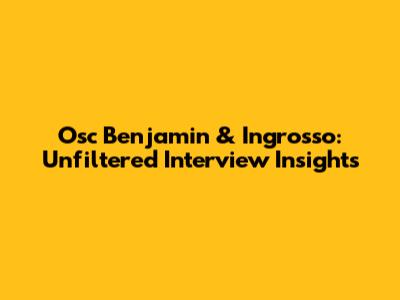 Osc Benjamin & Ingrosso: Unfiltered Interview Insights