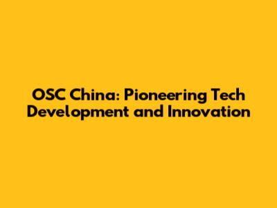 OSC China: Pioneering Tech Development And Innovation