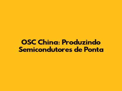 OSC China: Produzindo Semicondutores De Ponta