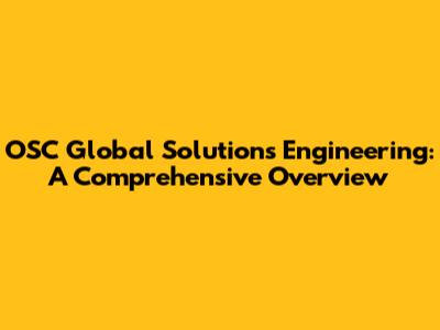 OSC Global Solutions Engineering: A Comprehensive Overview