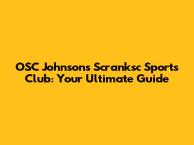 OSC Johnson's Scranksc Sports Club: Your Ultimate Guide