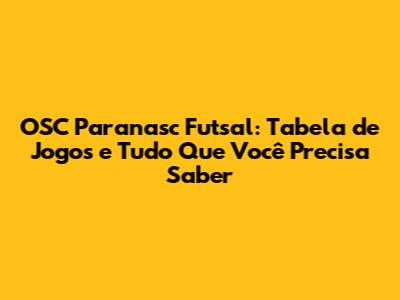 OSC Paranasc Futsal: Tabela De Jogos E Tudo Que Você Precisa Saber