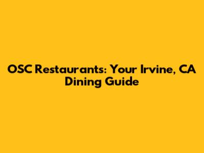 Unveiling OSC Restaurants in Irvine