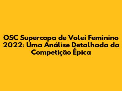 Em resumo, a OSC Supercopa de Volei Feminino 2022 foi uma competição de vôlei feminino que reuniu alguns dos melhores times do Brasil. Organizada pela Confederação Brasileira de Voleibol (CBV), a Supercopa é um torneio que abre a temporada de vôlei no país. Geralmente, ela coloca frente a frente o campeão da Superliga (campeonato brasileiro) e o campeão da Copa Brasil. Ou seja, só os times de elite, os grandes nomes do vôlei nacional, têm vaga garantida. O torneio é uma espécie de “tira-teima” para ver quem começa a temporada com o pé direito, já mostrando a que veio. Além de ser uma competição empolgante por si só, a Supercopa serve como um termômetro para o que esperar da temporada. É ali que os times mostram suas novas táticas, os reforços entram em ação e as rivalidades já começam a pegar fogo.