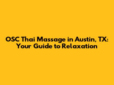 Hey there, massage enthusiasts! Ready to dive into the world of OSC Thai Massage in Austin, Texas? If you're anything like me, you're always on the lookout for ways to unwind and de-stress. And let me tell you, OSC Thai Massage offers a unique and incredibly effective way to do just that. This isn't your average massage – we're talking about a blend of ancient techniques, stretching, and acupressure that can leave you feeling refreshed, rejuvenated, and ready to take on the world. I've been exploring the massage scene in Austin for years, and OSC Thai Massage consistently stands out. So, grab a comfy seat, and let's explore everything you need to know about experiencing an amazing OSC Thai massage in the heart of Austin, Texas.