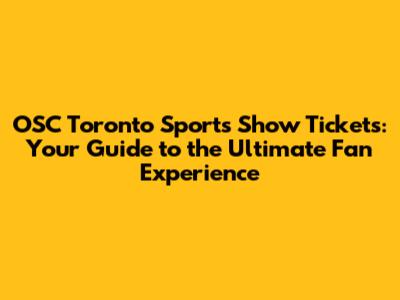 OSC Toronto Sports Show Tickets: Your Guide To The Ultimate Fan Experience
